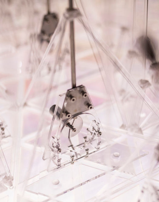 此作品以「極限」為命題,刻劃海島蘊藏的強大能量。島人猶如飛舞的群蝶,翩翻揮動翅膀,聚集起離散的微風,蓄積一場更加巨大的風暴。整體設計以「高通透」的回收材質為主,重現「島嶼」與「海水」密切的關係。